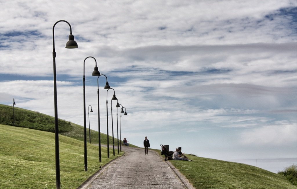 En la parte final del parque, se encuentra una enorme estructura de hormigón. Se trata de Elogio del Horizonte, la obra del artista Eduardo Chillida, hoy una de las postales más conocidas de la ciudad. Como debajo del monumento hay un bunker militar abandonado, al colocarnos en el centro de la estructura se percibe de manera más intensa el ruido del mar.