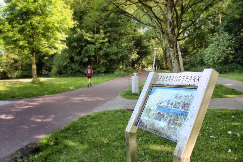 El segundo parque, Rembrandtpark, tiene más zonas arboladas y menos lugares de deportes y recreación. De mayor tamaño que Vondelpark, lo mejor es simplemente dedicarse a caminar, y abrir el Google Maps recién cuando quieran salir hacia otro lugar en la ciudad. En el puente que se encuentra en la zona central del parque encontrarán unas enormes esculturas de perros, donde tomé la foto que abre la entrada, y que es la postal más conocida de Rembrandtpark.