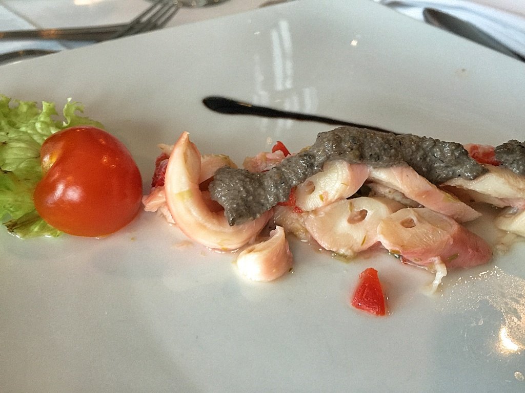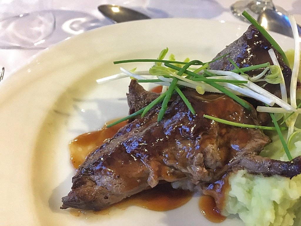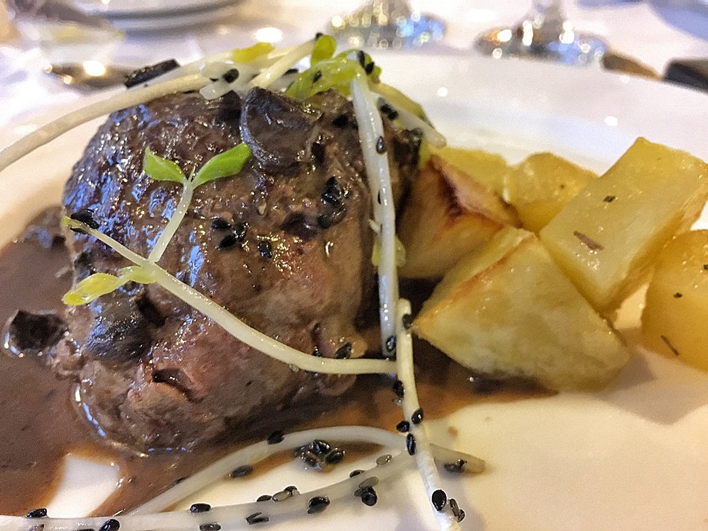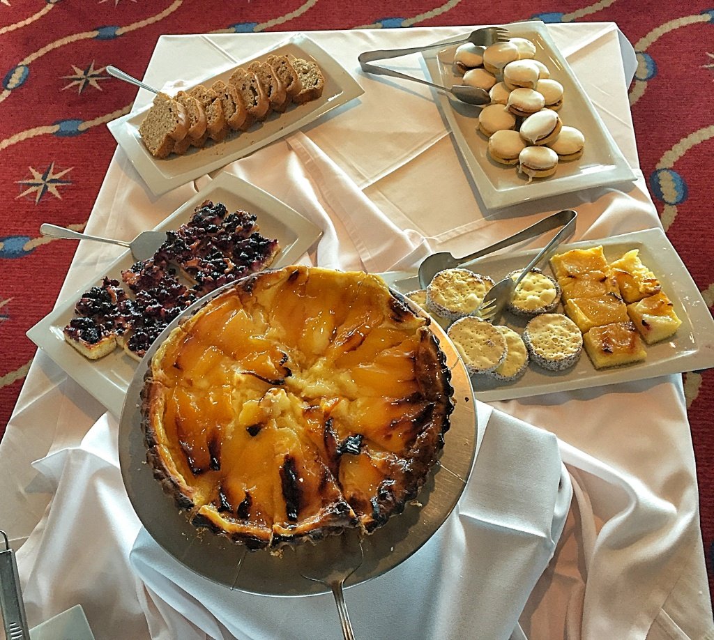 La comida de las noches tuvo sus mejores platos en los pescados, que en general me parecieron muy recomendables. Las entradas incluían platos como centolla fresca con crema de palta, Y los platos principales, a elección, eran spaghetti a la putanesca, filete de vacuno a la parrilla con salsa de callampas o con teriyaki, ensalada verde con pepinos, tomates y salmón ahumado, entre las opciones disponibles. En lo personal, me gustaron más los pescados que las carnes rojas, pero es cuestión de gusto.