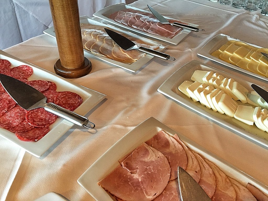 Desayunos, muy en el estilo de los hoteles, no van a extrañar los huevos revueltos, el tocino frito (panceta, en Argentina), y las salchichas, más productos lácteos como yogures y quesos. Más: fiambres, tortas, mermeladas, y la lista sigue. La verdad que las fotos no le hacen justicia.