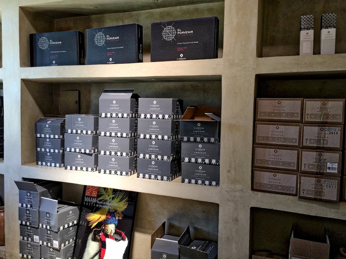 En nuestro caso, pudimos tener una degustación particular, junto con Lucía Romero, propietaria de la bodega, y enólogo Mariano Quiroga. Probamos algunos de los vinos de la bodega, en particular los de la gama alta. Además de los tradicionales Torrontés y Tannat, también saboreamos el Malbec y el Syrah; en éste último caso fue realmente una sorpresa, porque no había probado este varietal en vinos de la zona. Resultó ser un vino realmente elegante. Pero luego pasamos a la segunda parte: armamos dos cortes, en los que combinamos diferentes proporciones de Malbec, Syrah y Tannat. El objetivo era conocer de que manera se pueden crear nuevas propuestas en vinos a partir de la combinación de los distintos varietales. Por cierto, los cortes que comercializa la bodega se hacen a través de la línea El Porvenir. Las otras dos, Laborum y Amauta, son para varietales.