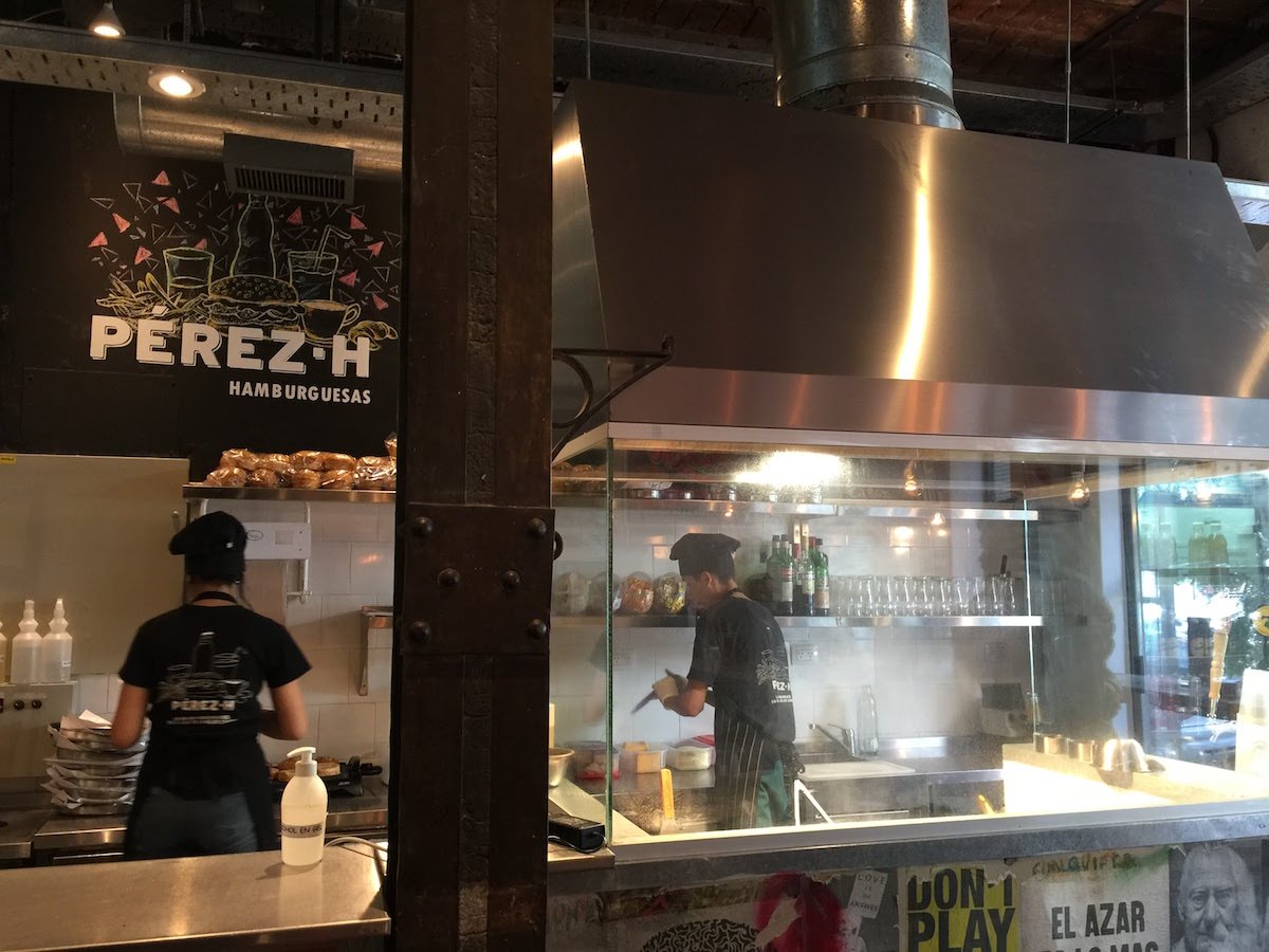 En el caso de las hamburguesas, pasamos por Perez H, que se concentra en tener una propuestas bastante clásica -aunque últimamente agregaron algunas opciones bastante diferentes, como la Criolla, que combina carne con chorizo y morcilla. Mi elección fue la Doble Panceta Doble Cheddar, que estaba muy bien. Básicamente, el diferencial que proponen es la calida de la carne y el pan, de elaboración propia. Se puede acompañar con limonada -hay varias, me quedé con la de menta y jengibre, pero hay otra con frutos rojos. La recomendación es acompañar la hamburguesa con las batatas fritas, que están muy ricas. Pueden comer su hamburguesa más bebida por alrededor de 100 a 110 pesos.