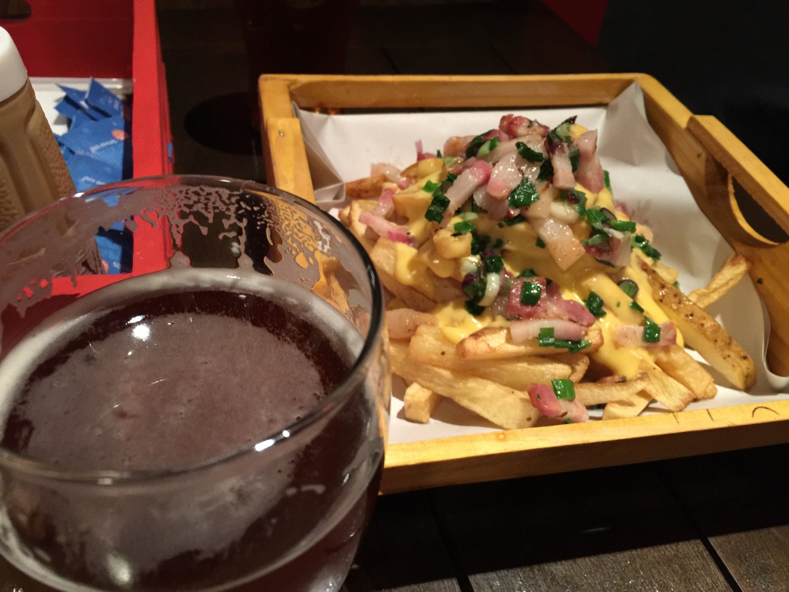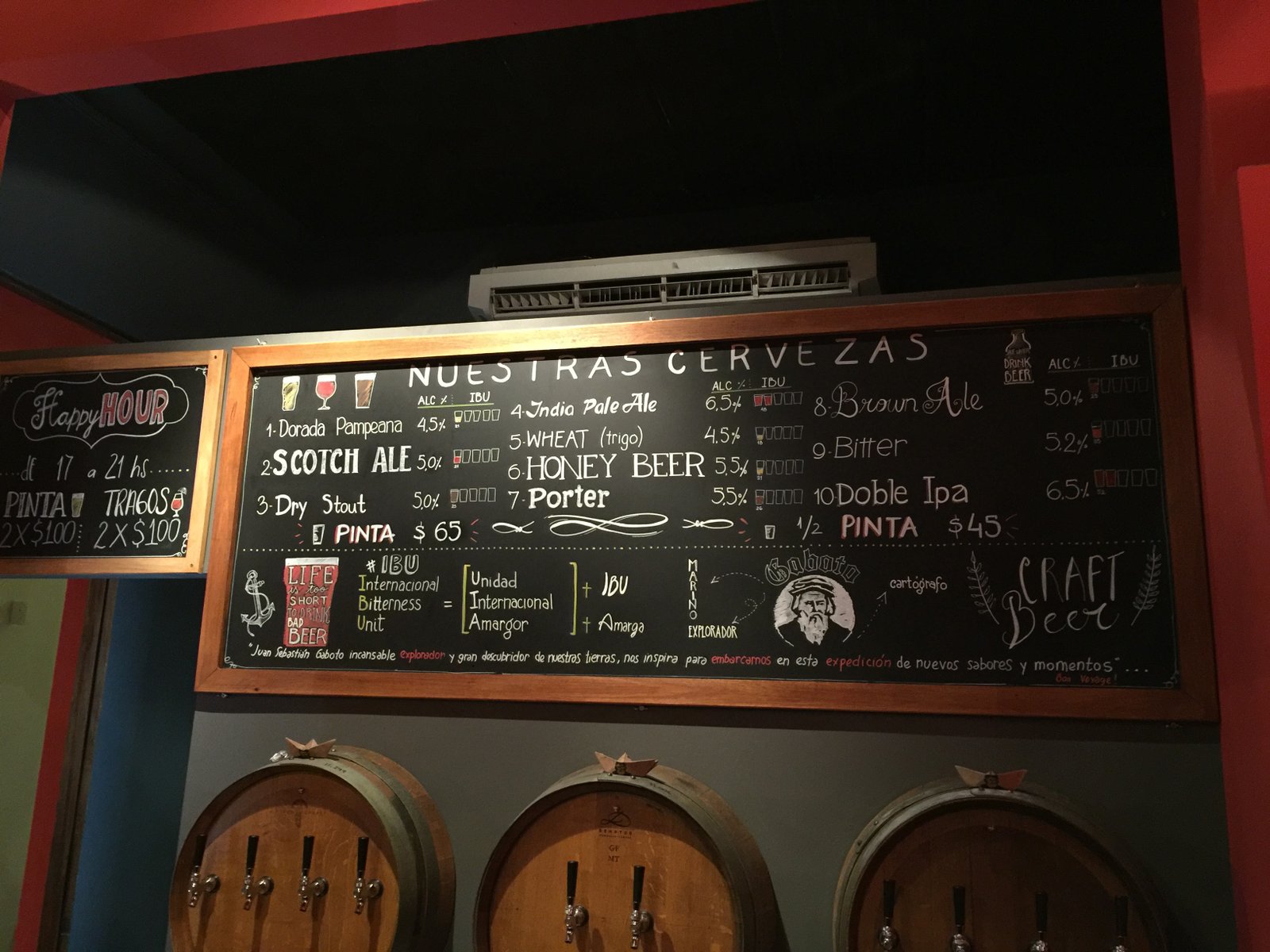 Por el lado de la cerveza, fue buena ocasión para pasar por Gaboto, que no habia tenido ocasión de conocer. Tiene 10 variedades de cerveza, de las cuales probé tres: IPA, Doble IPA y Bitter. Mis preferidas feras dos últimas. La Doble IPA combina dulzor de entrada con un final de amargor típico de las IPA. La Bitter me hizo acordar mucho a la Rauchbier de la cervecería chilena Kunstmann, con su sabor ahumado intenso. En todo caso, cualquier de las tres cervezas es un muy buen acompañamiento para comidas. Probamos una papas fritas con panceta y queso cheddar, un plato clásico de las cervecerías locales. Hasta las 21 horas hay Happy Hour, y las pintas que normalmente cuestan 65 pesos salen 50. Los martes el público femenino tiene happy hour toda la noche.