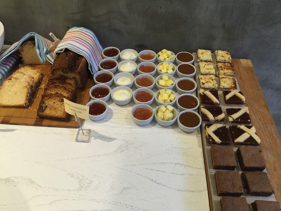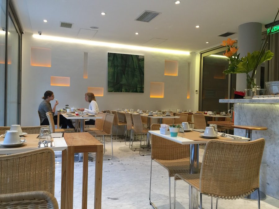 El desayuno se sirve en la planta baja. Hay muchas frutas, jugos -recomendada la limonada con menta y jengibre- y yogur, además de medialunas y otros dulces, como pastafrola. Hay distintos panes y fiambres. Pueden pedir su granola para acompañar el yogur. El café es filtrado por prensa francesa, y se lo dejan en la mesa.