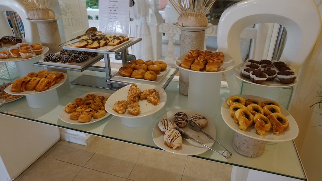 El desayuno era muy completo, como puede esperarse de este tipo de hoteles. Tienen muchos platos calientes, que incluyen desde huevos revueltos y panceta hasta salchichas y fiambres. Desde ya, hay bastante fruta disponible, lácteos y panes. Si quieren huevos revueltos o tortillas recién hechas, las pueden pedir en la barra, donde además hay panqueques. Para tomar hay jugo y café, que es servido por los camareros. Si quieren café espresso, lo pueden pedir en la barra del lobby, pero en el desayuno no estaba disponible.