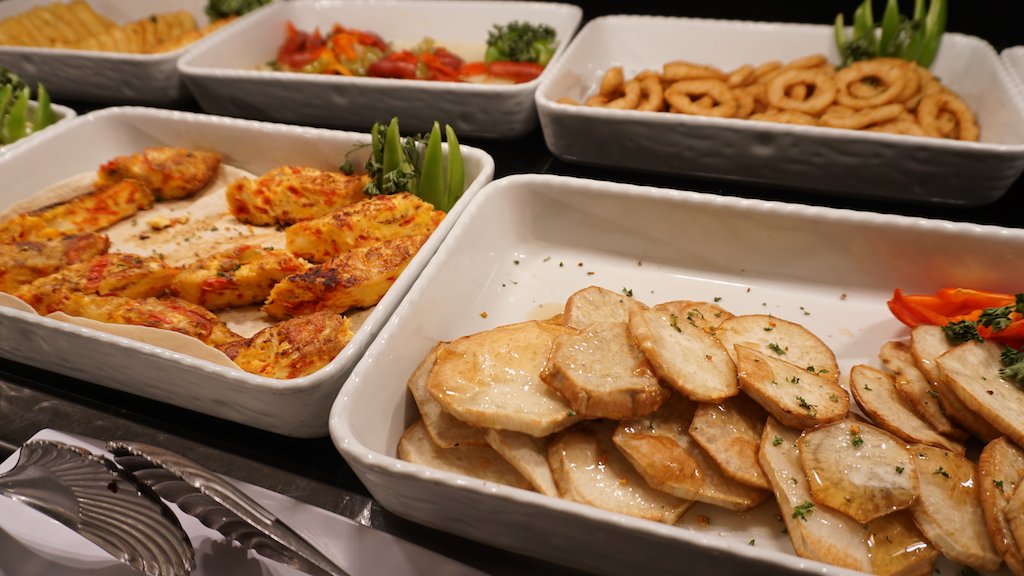 La cena tenía muchos productos de mar, lo que al menos para mí es algo que siempre valoro. Desde langosta hasta pargo -que localmente se conoce como «chillo»- junto a langostinos y vieiras. Desde ya, también pueden encontrar carne vacuna y pollo, más mesa de fiambres y postres -una buena cantidad de postres. El buffet cierra a las 22 horas. Pueden pedir la langosta directamente en la barra, donde además hay una salsa para acompañarla en base a limón y manteca, y que queda muy bien.