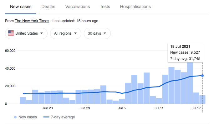 Podríamos decir que era algo esperable: verano boreal más una campaña de vacunación que se extendió a toda la población, más levantamiento generalizado de las restricciones. Es cierto que ahora estamos un incremento de casos a medida que la cepa Delta se esparce por el país, pero en todo caso va a ser un tema a ver en las próximas semanas. Por ahora el mercado turístico en Estados Unidos está lanzado hacia la normalidad